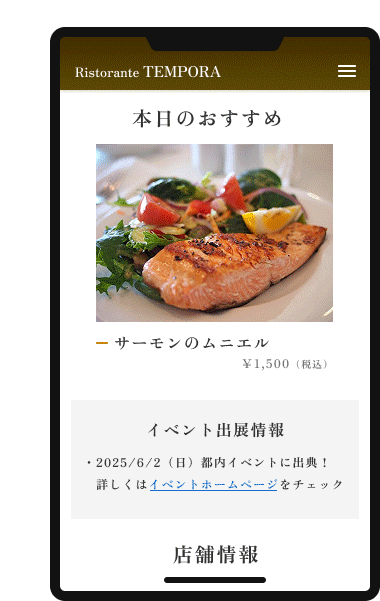 本日のおすすめ、今の空き状況、急な営業時間の変更など、“いま”の情報をスピーディに反映したい